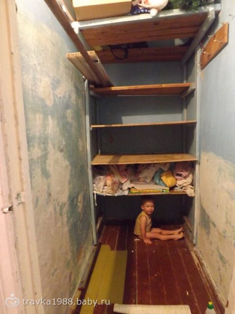 Девочки начали делать гардеробную из темнушки в 3 квадрата! Как стелаж сделать? Из чего? Может у вас пример есть? на стены хочу обои, на потолок плитку обычную потолочную, на пол линолеум!
