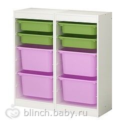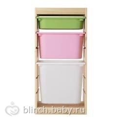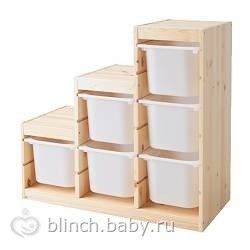 у меня такая, ящики как на 2 фото, лучше разные, а то мелачевка в большом ящике потеряется и ребенок будет всю кучу вываливать, чтобы найти. Удобно очень, не то что раньше складывали в мягкую корзину, куча мала и ничего там было не найти