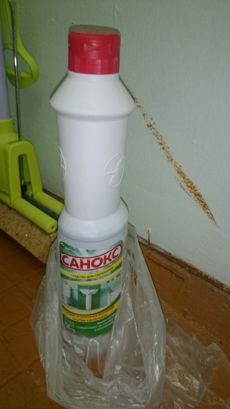 Помойму я доместос и брала в черном бутыле от ржавчины