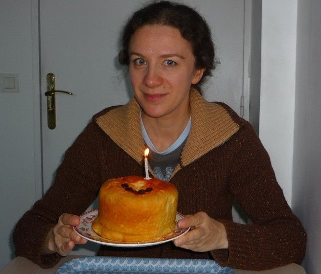 Я в пятницу спекла куличи и пирожки: получилась 1 маленький, 1 большой каравай и 10 пирожков с яблоками изюмом и корицей. По очереди все задували свечки!