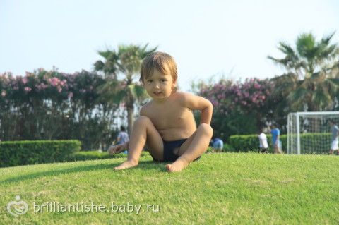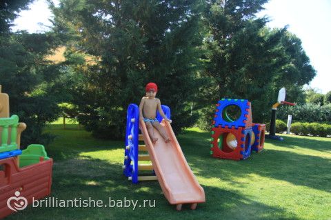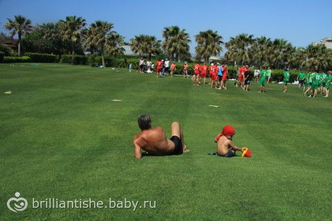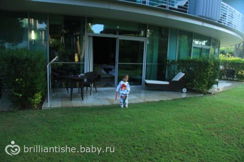 Очень понравились большие зеленые поля перед пляжем. Сын носился по ним как подорванный, играл в мячик и просто охреневал от пространства, вечером и во время дневного сна еле доходил до своей кровати и засыпал уже минуты через 2. Кстати, приятно удивило наличие в номере маленького беленького детского халатика.))
