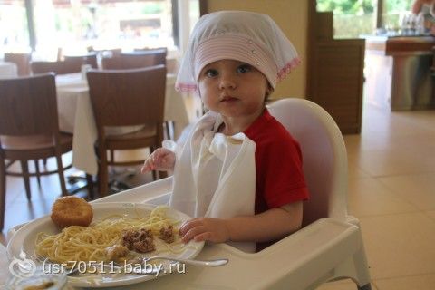 На момент отдыха в Греции Еве было 1.3, поэтому в основном она ела с общего стола. С собой брала немного баночек её, но почти не пригодились. Кушала всё. Макароны, котлетки, курочку, рыбу, овощи, творожки, сыр, йогурты...