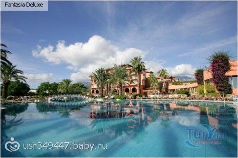 На конец то мы решились и определились с отелем. В турагенстве просидели 3 часа в итоге выбрали этот отель «Fantasia Hotel Deluxe Kemer» улетаем 4.09 на 10 дней. Стоимость на 2взр+ 1 реб ( 8мес) 90500руб. Я позвонила в отель, меня больше интересует чем будет питаться мой маленький ребенок. Мне очень подробно рассказали, что можно все приготовить что Я скажу, точнее составить меню на неделю и мне будут готовить. Вот теперь думаю стоит ли мне везти собой баночки? Там даже коляски выдают по запросу, но нам не надо у нас есть =)) Так же заказали отдельный трансфер на 10 человек в один конец, стоит 100евро, но это уже приедут встречать из отеля, у турооператора Пегас стоит 350 дол.