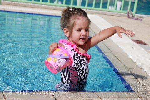 Сразу же позавтракали и отправились в бассейн, я то конечно хотела на море, но дочурка была непреклонна, как только увидела бассейн, стала канючить — хочу в бассейн, видмо вспомнила наши осенне-зимние занятия в бассейне.