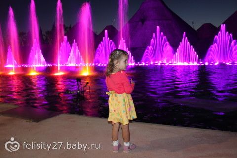 На следующий день мы ходили на шоу танцующих фонтанов — зрелище интересное, красивое, меня впечатлило — лазерное шоу, падающие и поднимающиеся под музыку потоки воды, имитация извержения вулкана. Наблюдать за шоу можно из-за столика кафе. Фотографировала мало, не передает фото всей прелести этого шоу, снимала на видео.