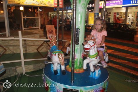 После шоу мы катались на качелях-каруселях. Надо сказать, что в Протарасе детские площадки с горками, качелями-каруселями на каждом шагу, особенно радует, что такие площадки есть почти в каждом кафе и можно спокойно поесть.