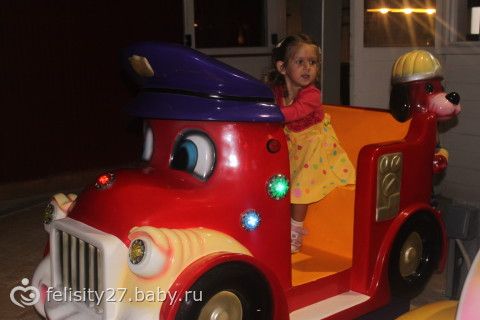 еще чуть подальше была большая площадка, там и батуты были и гоночные машинки и паровозик и еще куча аттракционов )))У нас наоборот проблема была — никуда нельзя выйти, ляля сразу просится на качели, потому что куда не пойдешь — они на каждом углу )))
