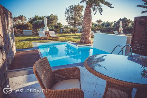 И вот чуть ли не в последний момент все само собой решилось и я нашла отель к которому у меня лежала душа ) Отль на Крите Grecotel Amirandes. Сказать что мне понравился отель -ничего не сказать) Это просто сказка!!! И в плане сервиса и в плане питания, отношение к детям и вообще к гостям! Все на уровне! Номер мы взяли на первом этаже с собственным небольшим приватным бассейном, терассой и лежаками с зонтиком на газоне) Все как мы любим))))