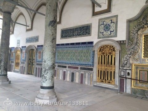 Следующая экскурсия была во дворец Топкапи. Почти 400 лет он был сердцем Османской империи. Сейчас это музей, в нем выставлены коллекции императорского фарфора, драгоценностей, нарядов и оружия. Здесь хранятся святые мощи Магомета.