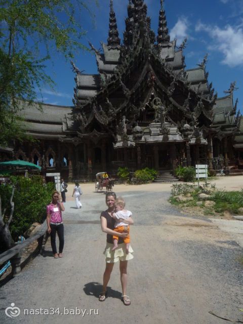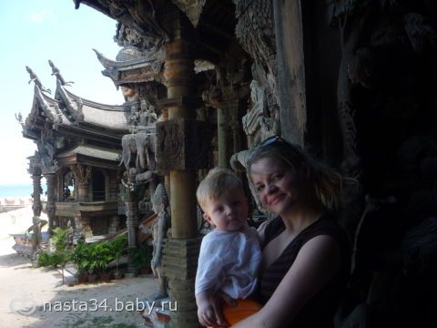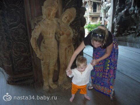 В отеле нас быстро заселили, отель нам понравился, к нам конечно из-за сына было повышенное внимание, как впрочем и везде (на улице, в магазинах и т.д.). не обошлось наше путешествие без огорчений, через 2 дня сын затемпературил, причем игрался, был веселый, теперь я думаю наверно это и была акклиматизация у него. Я ему давала нурофен, через 2 дня все стало хорошо. Море сын не оценил, боялся волн. поэтому большую часть он купался в бассейне, из которого мы его вытащить не могли. Тут дома у ребенка вечно непонятно на что были щеки красные, а там как рукой сняло, причем я дня через 4 обнаглела и уже стала давать ему и манго и ананасы. И сама ела уже все, и ни в чем себе не отказывала. Так как я была уже в Паттае, и многие экскурсии посетила, то в этот раз я с сыном съездила только на две: Крокодиловая ферма и парк миллионных камней, и в Храм Истины. А мама еще на две одна без нас. Один раз мы на катере съездили на близжайший остров Ко лан. Ну и конечно какой Тайланд без шоппинга. Себе я в этот раз мало чего купила. а вот сыну ууух… на 2 года вперед точно одет!!!