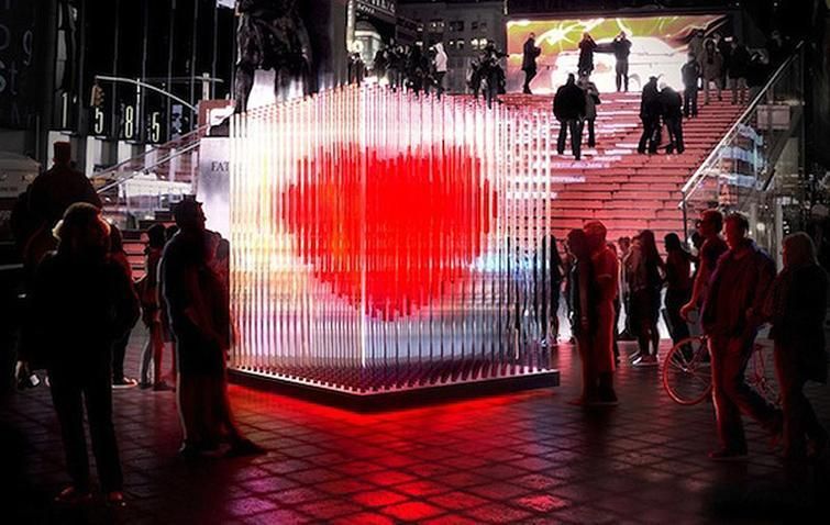 Если вдруг в День святого Валентина в этом году вы оказались на Таймс-Сквер в Нью-Йорке, вы наверняка видели это 3-метровое красное сердце. Его создала датская архитектурная фирма BIG из 400 прозрачных светодиодных акриловых трубок, которые пульсировали ярко-красным светом, когда стоявшие рядом люди прикасались друг к другу. Как? Когда люди собирались на площади, их шаги собирались, как энергия, превращаемая в свет. Таким образом, толпа заставляла сердце гореть все ярче и ярче. Любите друг друга!