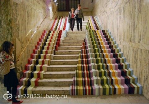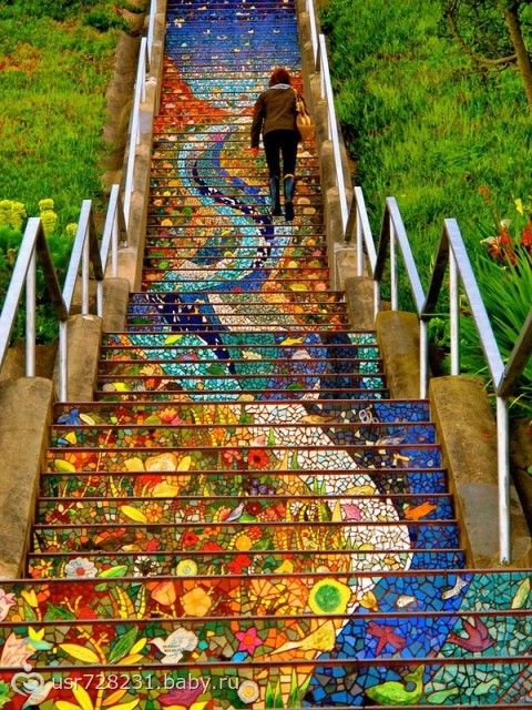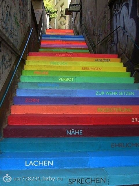 Клавиши фортепиано, радуги, картины, человеческие лица, выполненные из мозаики, абстракции — творчество не имеет границ, на улице или в помещении! собрал коллекцию разрисованных лестниц, по которым не скучно подниматься.
