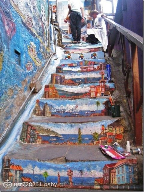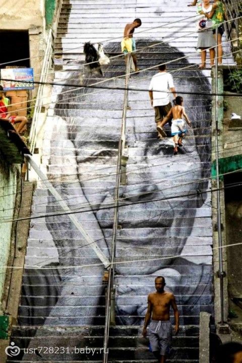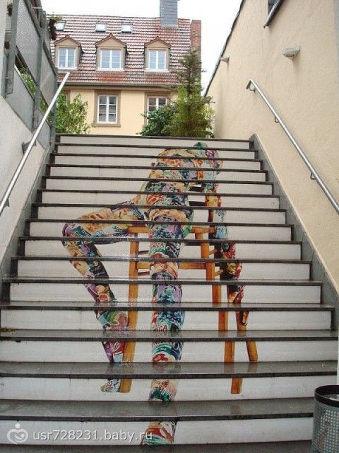 Пространство лестниц — излюбленное место для творчества художников стрит-арта по всему миру, ведь с помощью возвыщающихся ступенек изображению можно придать объемность и перспективу, а также поднять настроение тем, кто по ним поднимается.