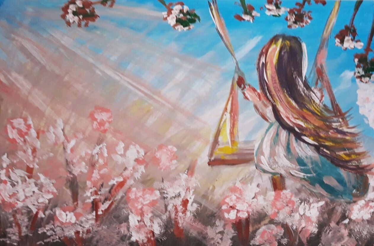 Всем привет. У подруги годовщина свадьбы - 1 год. Спросила - что подарить, говорит: картину "Счастье на качелях". Хочет в спальне повесить.