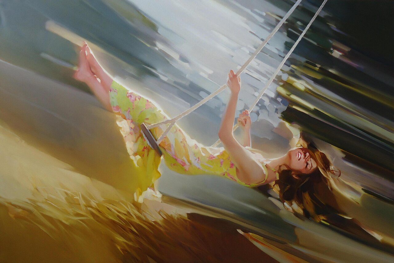 Перерыла весь интернет и алмазные мозаики и картины по номерам, везде разные интерпретации "Счастье на качелях" (((