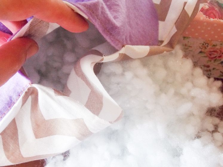 13. Наполняем подушку синтетическим пухом через отверстие.