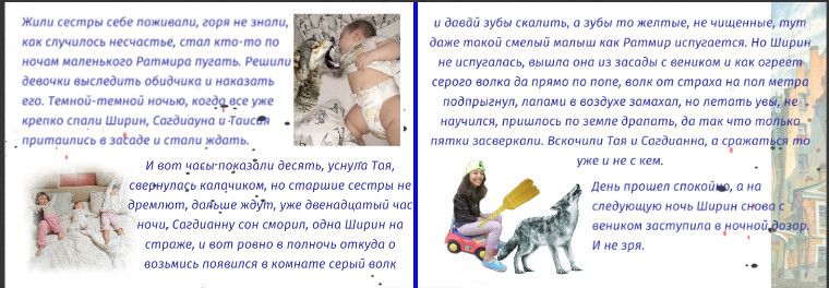 Недавно подруга с сайта обратилась ко мне за помощью, попросив создать для ее дочерей подобную книгу. Мы с Котейкой объединились – написали три сказки и оформили книгу.