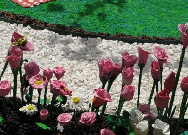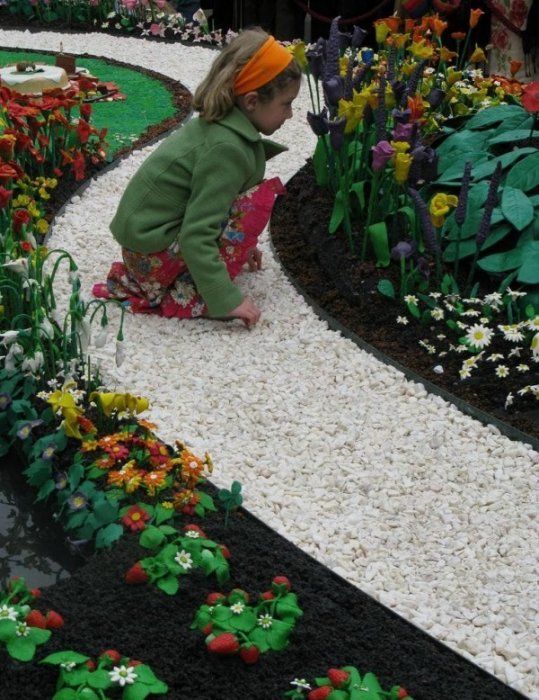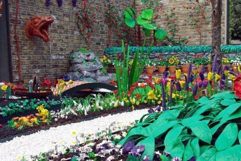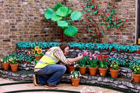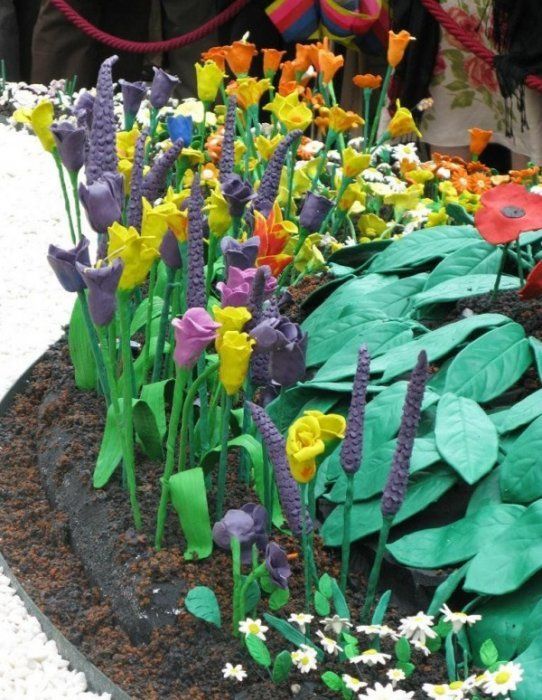 $ На выставке цветов в Челси (Chelsea flower show 2009) всех посетителей привлекал уютный уголок сада, где всё вылеплено из пластилина руками Джеймса Мэя (James May), ведущего британское телешоу «Top Gear». Идея Джеймса шокировала многих экспертов в области садоводства, зато посетители выставки были в восторге и любовались пластилиновым садом едва ли не охотнее, чем настоящими цветами. На свой сад Мэй истратил ,52 тонны пластилина 24-х оттенков. Он признается, что любит цветы, но ничего о них не знает и даже не имеет собственного сада. Джеймс утверждает, что никогда не играл с пластилином в детстве. Может быть, именно поэтому он с таким энтузиазмом лепит пластилиновые яблоки и тюльпаны, став взрослым?)