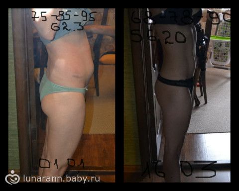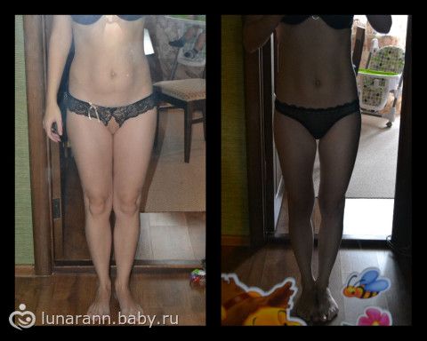 Никаких диет и систем питания, питаюсь по многим принципам неправильно (сладкое, мучное, жареное, соленое). Пишу это, так как лично мне было бы проще начать заниматься собой, зная, что эффект может быть достигнут без ограничений в питании (а для меня это очень важно — я люблю пожрать, да еще и ГВ). Основной принцип «БЕЗ ФАНАТИЗМА», только физическая нагрузка дома (начала заниматься 01.01.13 постепенно увеличивая нагрузку): теперь периодически: