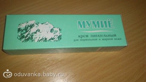 Готовлю крем следующим образом: 10 таблеток мумие толку в порошок, добавляю несколько капель воды, для растворения всего порошка. В отдельную баночку выдавливаю весь тюбик жирного детского крема, можно использовать и другой жирный крем, например от растяжек, в идеале такой крем должен содержать активные увлажнители (например хитозан, алоэ вера, гиалуроновую кислоту), коллаген, аминокислоты, витамины, минералы, и добавляю в него мумие. Тщательно перемешиваю.