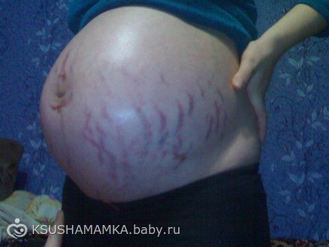 К 8 месяцу я заметила первые, прозрачные растяжки на животе! И поняла что — НАЧАЛОСЬ! Мне поставили многоводие и врач предупредила, чтобы я была готова к тому, что кожа станет рваться!