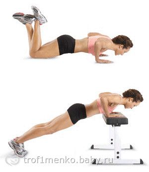 Для новичков, которым трудно отжиматься как на картинке выше есть облегченные варианты