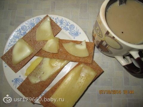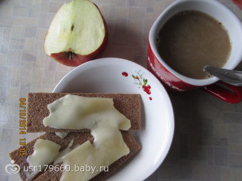 На завтрак ела: яйцо вареное, бутерброд с сыром, кофе