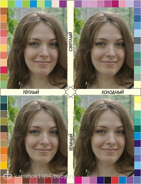 Три цвета по середине нейтральны для внешности. А два крайних — расставят акценты. Так можно обыграть глаза с контрастным кружочком.