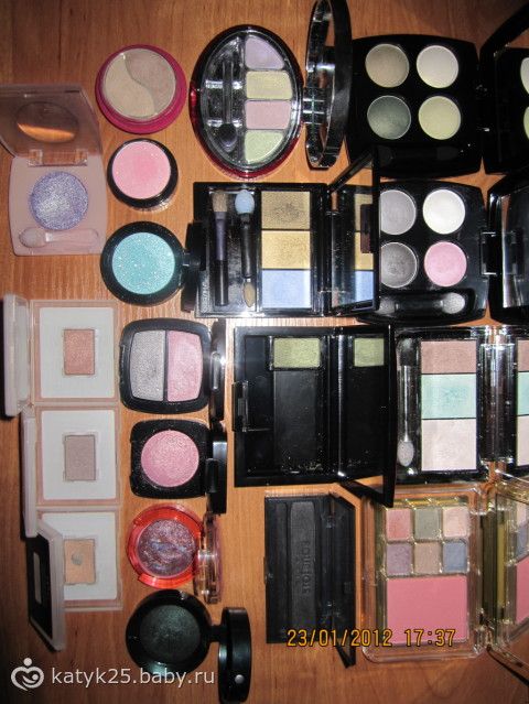 вооооот это да!!! я в декрете красилась только по праздникам и если просто шла куда-то, то только тушь и все )))) такого количества косметики никогда не видела! а духи у меня уже 4 года одни и те же (аромат один, а израсходовалось за это время 3 флакона )
