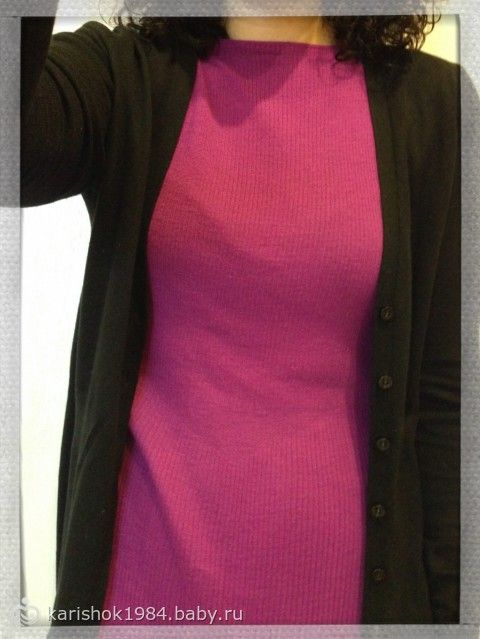 Кстати, надетое задом на перед. Это можно делать в случае с трикотажем, потому что нет вытачек и спинка у нас закрыта кардиганом.
