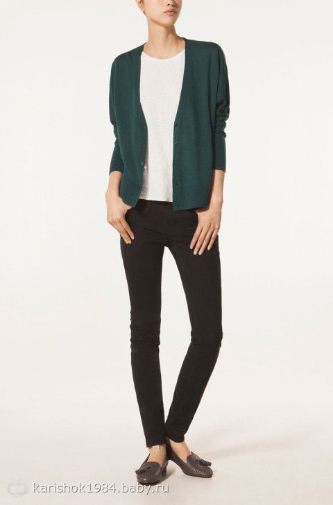 Еще небольшие советы по кардигану: найдите без карманов. Можно на клепках или с молнией, но тогда Комплекты будут уходить больше в спортивную классику, а значит, бусики/браслетики — отпадают. Также это будет более узкий выбор по стилю обуви. Так что легче работать с пуговицами.