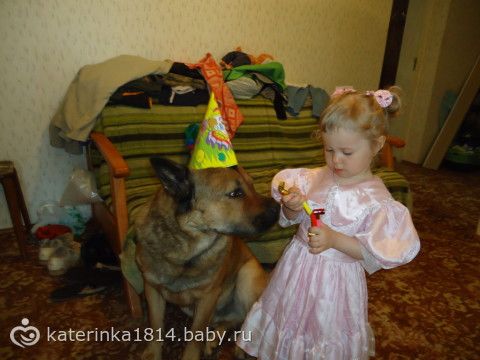 Он еще сам щенком был. Сначала испугался суета, куча народу, его все гоняют. Но когда родственнички ушли мы его позвали, дали обнюхать дочу и ножки облизать. С тех пор они дружат.