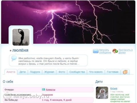 По поводу хобби, мне вот всегда было очень жаль, что у меня его как такового нет, вот чтобы как люди что-то любят, увлекаются и занимаются этим постоянно с удовольствием, у меня по большей части не было времени и возможности пробовать что-то новое, особенно пока жила в маленьком городе. НО! есть одно увлечение, которое обожаю — это танцы, танцую со школы, когда в группах, когда просто дома занималась. Очень бы хотела в этой же области работать, но как это сделать в Алматы не знаю. Через 5 лет вижу себя мамой двоих детей)))) Алматы мне не нравится — построен в ужасном месте, отвратительная экология, никакой природы, воды, половина города просто базар, чтоб доехать от одного конца до другого 3 часа надо, вобщем много чего)) переехать я хотела бы, но меня тормозит муж, он то хочет, то нет и не хочет ехать без родственников)