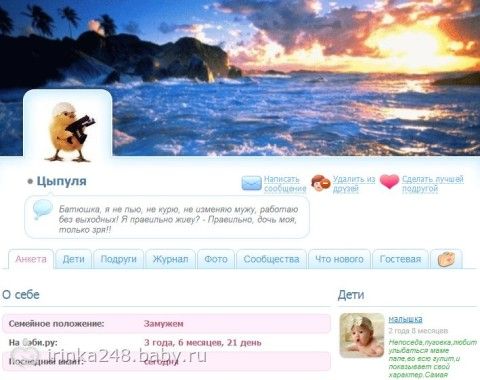 Еще помню Яночка-фейка мне придумала ник, цыпа убийца, но потом я решила переименовать в Цыпулю, т.к эта картинка меня ассоциирует добрая душа, поэтому и цыпочка)