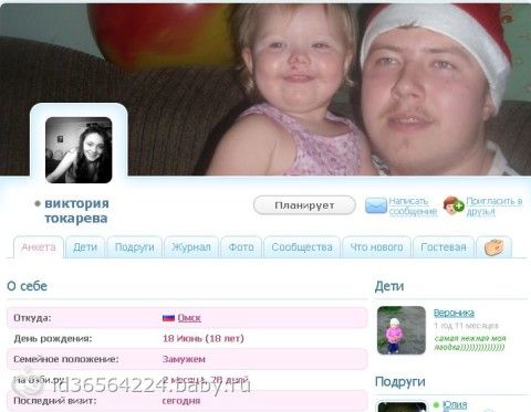 На сайте я нахожусь уже 1.3 месяца, просто первый я зарегистрировалась через агент, а потом удалила страницу с агента и больше не могла зайти, второй раз уже удалил муж страницу (так и не отвечает из-за чего он её удалил) Сайт я нашла из-за того что мне очень хотелось рассказать про свои роды! И яндекс выдал мне Беби.ру. Советами я пользуюсь, получаю знание других людей и ложу все себе в капилочку
