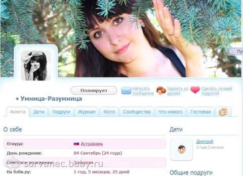 Мне 24 года.Зовут Юля.С ником вообще история целая-придумал муж.Мою прошлую страничку забанили (не помню за что), и я решила новую создать.Имя и фото не хотелось своё ставить.Всю голову сломала, а тут муж с работы приходит и говорит-«Что, умница-разумница, опять баб жизни учишь?»Вот и решила себе взять Умницу-разумницу)))