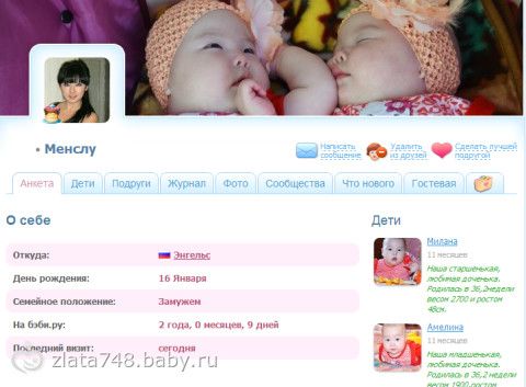 Есть бебирушки, которых я постоянно читаю, за которых переживаю, радуюсь вместе с ними и т.п., но наверное я немного стеснительный человек и очень тесной дружбы не свершилось пока, но я очень хотела бы сдружиться с новыми подругами, чтоб ходить друг другу в гости, делиться бедами и радостями, вот!(