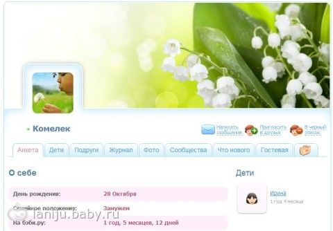Сюда меня пригласила моя подруга, которая немного раньше меня родила своих очаровательных деток (у нее их сразу двое), она просто мне сказала, " Зарегистрируйся на беби.ру!", что я и сделала без лишних вопросов, если честно, то жалею что не зарегистрировалась здесь раньше, ведь за все время, что я тут нахожусь успела познакомится с замечательными девчонками и многому у них научится. Спасибо, вам за это мои подружки))))