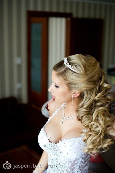 Вот такая прическа, диадема +фата, все наверху завиточками)Красоточка!!! Я тоже диадемку хочу! Это так красиво — как принцесса!