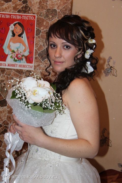 У нас 26 апреля будет свадьба, буду делать прическу убранную наверх, чтобы голова была аккуратной в течении всей свадьбы. В прошлом году у меня двоюродная сестра выходила замуж и у нее были кудрявые распущенные локоны, которые уже на середине свадьбы превратились в висячие лохматые пакли! Не хочу такую прическу!!!