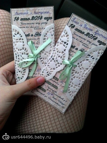 Ну пипец кончно- взяли салфетки обычные которые в кафе под кружки кладут и связали ленточкой! Но действительно приглашения это не главное, их не хранят, в памяти остаются эмоции от всей свадьбы