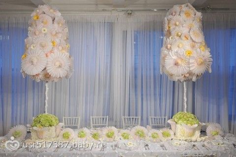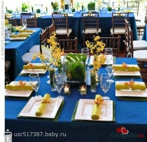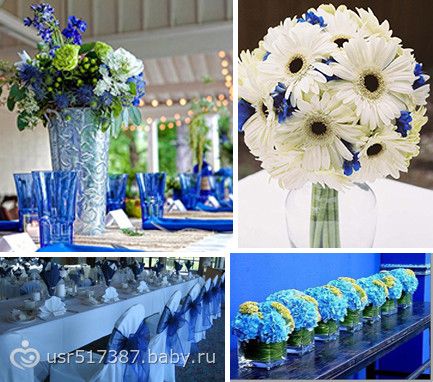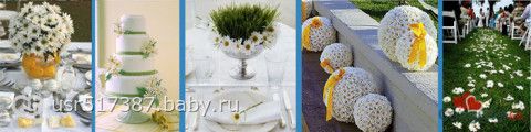 ты пока подожди выбирать конкретное оформление, необходимо на зал посмотреть. Потому что может быть, что твои ромашки в выбранный зал не подойдут… И туда как раз синий или красный будут идеальны.