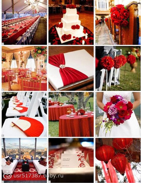 Красный — издавна связан с красотой, светом, теплом и огнём; На божественном языке символов красный — цвет милосердия и Божественной любви; Вбуддийской тантрической традиции — это цвет страсти. А в странах Востока красный олицетворяет радость и богатство. Выбрав для своей свадьбы красный цвет, вы выразите уверенность в крепкой любви. Красная свадьба — к красивой жизни!
