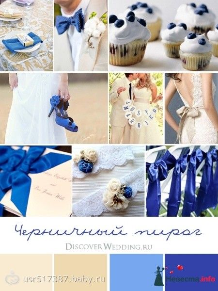 Синий— ассоциируется с вечными ценностями, высотой, глубиной и совершенством мира. В христианстве синий символизирует искренность и благоразумие. В западной культуре это цвет благородства и стабильности. В Индии синий цвет – это цвет мудрости. У многих народов синий использовался для защиты от сил зла. Молодожёны, выбравшие для бракосочетания оттенки синего, будут преданны семейным ценностям всю жизнь. Синяя свадьба— к миру в доме!