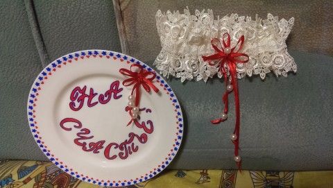 Я сама делала, в обычную атласную белую ленту резинку, края сшила, как бы пополам получилась сложенная лента, она раза в 2 длиннее резинки, чтобы оборочками была. По низу кружева приклеила (тонкая полосочка). Из красной ленты бантик пришила, а в серединку маленький кружевной белый цветочек. Получилось быстро и резинка не натирала, т.к.по размеру ноги не в натяг была:)