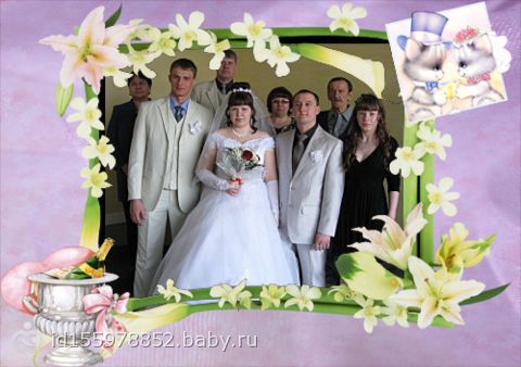$ Здравствуйте. Хочу рассказать вам свою историю любви. Мы с мужем уже вместе восемь лет. В официальном браке состоим два года, смешно наверно но замуж не хотела выходить… Предложения были, но мне казалось нам и так хорошо живется и без штампов в паспорте. И вот прожив шесть лет вместе, наконец долгожданные две полоски на моем тесте!!! Счастью небыло предела!!! Меня уже и родители и друзья уговаривали сыграть свадьбу… а мне не хотелось… но вот уже и время прошло и семь месяцев счастья и выясняеться что если ребенок рожден вне брака, то и гражданство придется делать на две фамилии и отцовство доказывать… вообщем я решилась, смешно, пузико уже было большое… свадьбой занимался муж.даже платье ездили вместе выбирали. Свадьба была хорошая, я преверженец не дорогих но свадеб со вкусом… Были только родные, и самые близкие друзья. Кольца тоже выбрали не дорогие, красилась сама и прическу делала сестра… Вообщем мое дело было только поставить роспись и надеть кольцо))) Сейчас живем в мире и любви)) Доченька у нас красавица и похожа на папу… но это уже совсем другая история)))