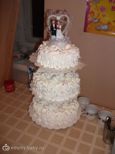 у нас должен был быть белый, трёхъярусный с нежно-жёлтыми лилиями (дорожка из лилий спускающаяся от верхнего к нижнему ярусу), а сделали нам такой