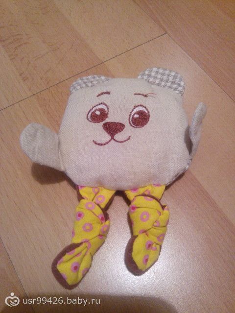 У меня и мешочек с косточками есть в виде игрушки, и другой в который его можно положить, всё лежит без дела(ну не интересно нам это...), а вот что его можно нагреть и от этого получить приятные ощущения, до этого я не догадалась. Спасибо. А это фото нашей игрушки с косточками, для того кто не любит шить))) называется Доктор мякиш.
