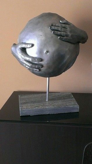 Мне понравились 2 варианта, где только живот и руки. Особенно в одном цвете (Серебряная краска). Выглядит не так реалистично, как слепки с грудью, а аккуратным концептуальным предметом искусства. Этот, да, вызвал тёплые чувства, обратил к мыслям о материнстве, как чем-то светлом, важном, незыблемом...