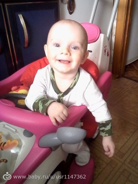 Привет всем! Давно не появлялась здесь, вернее не писала, т.к. времени вообще не хватает, если только быстренько почитать. У всех малыши прям молодцы, все активно развиваются и растут. Мы вот тоже растём, ползаем реактивно по всей квартире, доползаем до опоры — встаём и тянем всё до чего ручки достают. Пытается стоять без опоры, но пока только несколько секунд, правда на коленях без опоры стал стоять вполне уверенно) У нас уже 4 зуба, а 2 на подходе, так что повышенная капризность постоянно. Весим сейчас 8620 (+420), а рост 75см.
